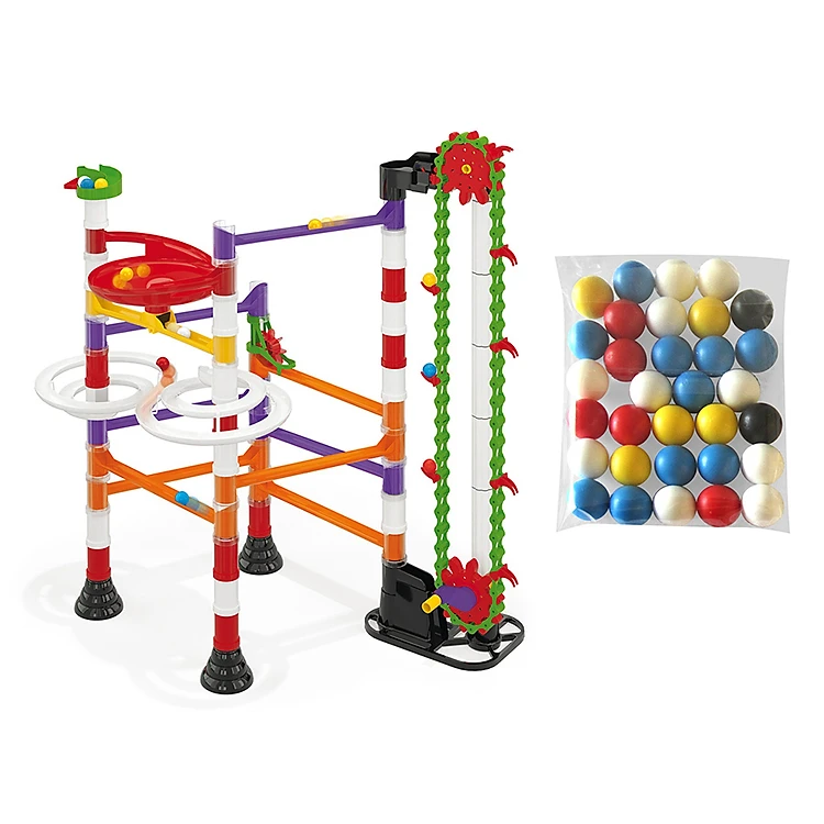 - Sự chuyển động của những viên bi lăn theo các đường trượt giúp các bé vui thích quan sát và say mê tìm hiều các nguyên lý vật lý cơ bản: vận tốc, lực hút, ma sát, lực ly tâm.