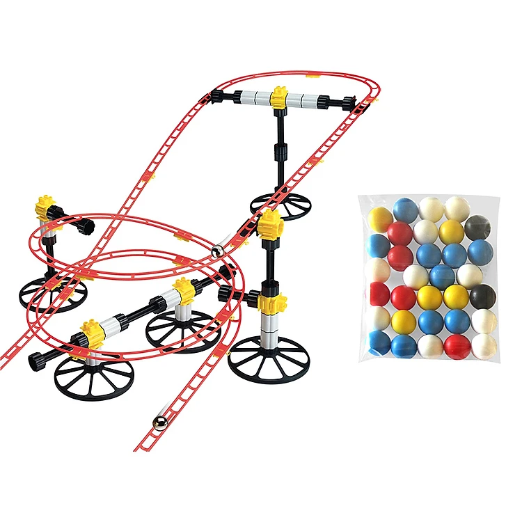 - Sự chuyển động của những viên bi lăn theo các đường trượt được các bé lắp ráp giúp các bé vui thích quan sát và say mê tìm hiều các nguyên lý vật lý cơ bản: vận tốc, lực hút, ma sát, lực ly tâm.