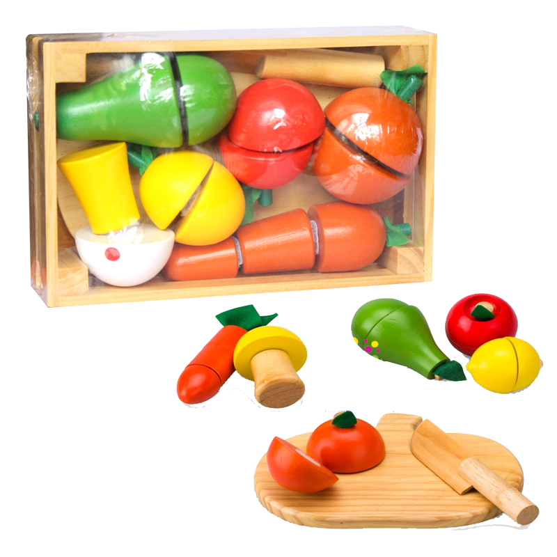 Khay rau củ quả kèm dao thớt bằng gỗ Benrikids được làm từ xưởng gỗ Việt nam tuyệt đối an toàn cho con trẻ rất được các ông bố bà mẹ tin dùng như hiện nay. Với bộ đồ chơi bằng gỗ này, Bé có thể vừa học vừa chơi Bộ đồ chơi cắt hoa quả bằng gỗ rất gọn nhẹ để có thể mang theo cho bé trổ tài mọi lúc mọi nơi. Gồm cả khay đựng, dao thớt và các loại rau củ rất nhiều màu sắc bắt mắt. Ba mẹ có thể chơi cùng bé, dạy cho bé cách cầm dao bằng tay phải, cách phân biệt đâu là lưỡi dao, đâu là cán dao.Đặc biệt là với từng loại trái, bé sẽ học được cách dùng lực để ấn dao cắt xuống và sau đó tự lắp ghép lại. Bộ đồ chơi cắt rau củ quả giúp bé làm quen với việc nội trợ, rèn luyện kỹ năng khéo léo cho đôi bàn tay