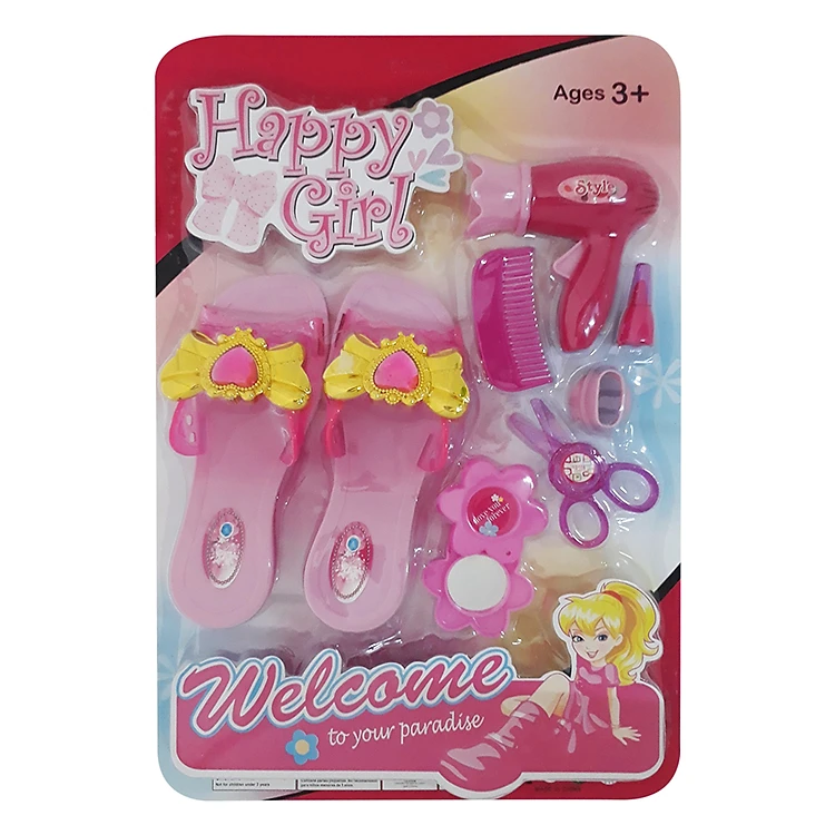 • Bộ Đồ Chơi Làm Đẹp NEW FOREST NF-9227-2 bao gồm một đôi dép hồng, gương, máy sấy tóc, son môi, cột tóc, hộp phấn trang điểm,....