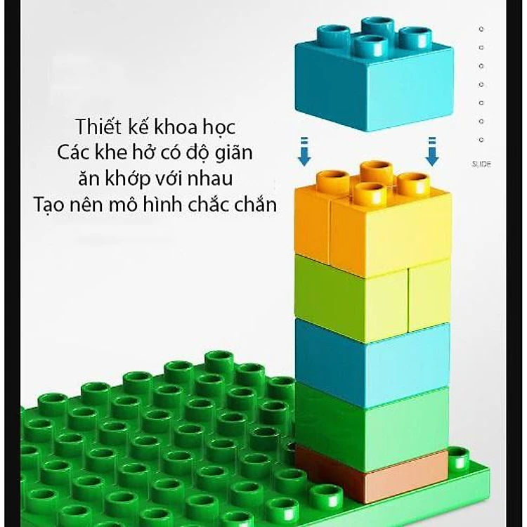 Bộ đồ chơi lắp ráp kiểu lego cỡ lớn 400 chi tiết lắp ráp công viên giải trí 2 tầng và cầu trượt