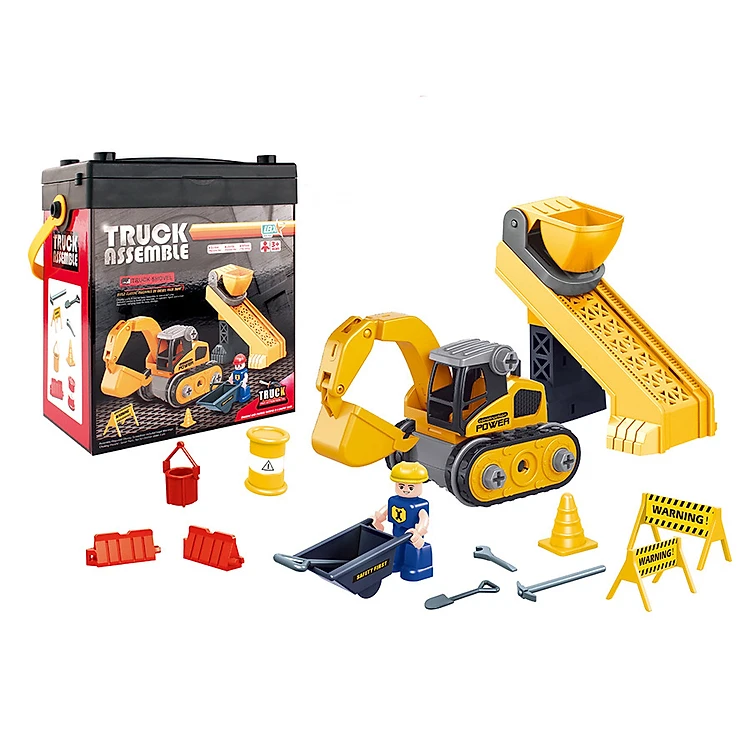 Bộ đồ chơi mô hình lắp ráp xe xúc KAVY kèm cần trục vận chuyển hàng công nhân và nhiều chi tiết, nhựa nguyên sinh an toàn