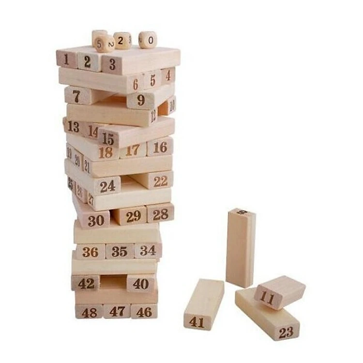 Bộ Đồ Chơi Rút Gỗ Loại Lớn - Đồ Chơi Xếp Khối 48 Thanh Kèm 4 Xúc Xắc