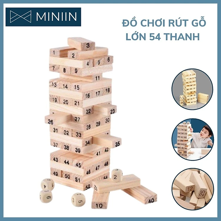 Bộ Đồ Chơi Rút Gỗ Thông Minh Cao Cấp Chính Hãng MINIIN - 2 Cỡ (Lớn và Nhỏ)- 54 Thanh Rút Kèm 4 Con Súc Sắc Rèn Luyện Trí Tuệ Cho Bé