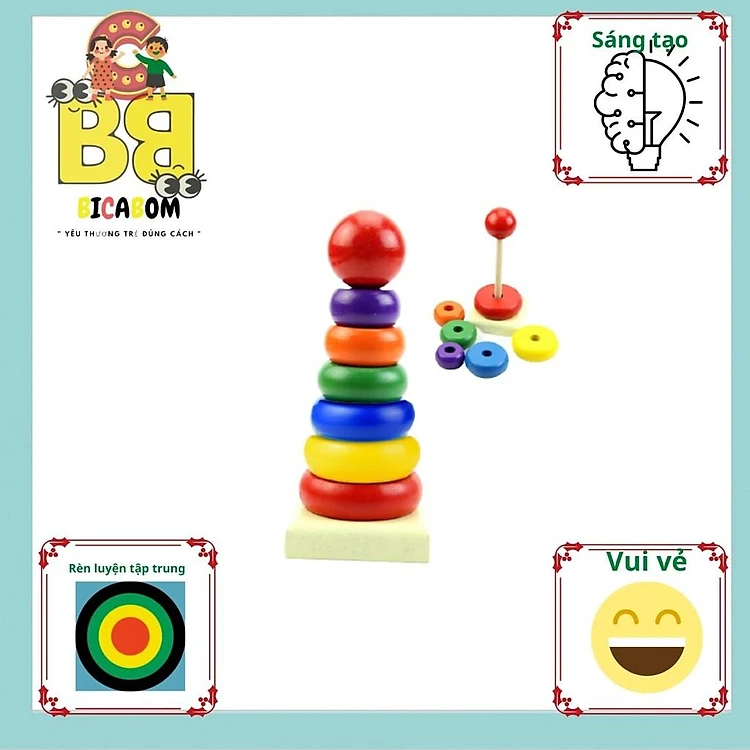 Bộ Đồ Chơi Tháp Xếp Cầu Vòng 7 Màu Bằng Gỗ Mini Cho Bé
