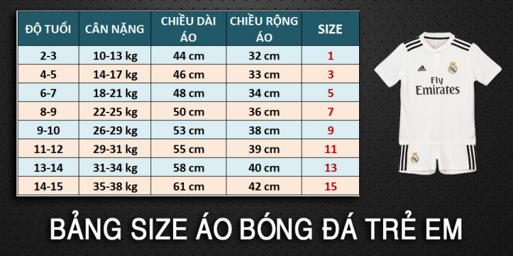 Việc chọn size áo rất quan trọng, các bạn nên đọc kỹ các thông số được đưa ra dưới đây trước để chọn cho mình 1 size áo bóng đá phù hợp.