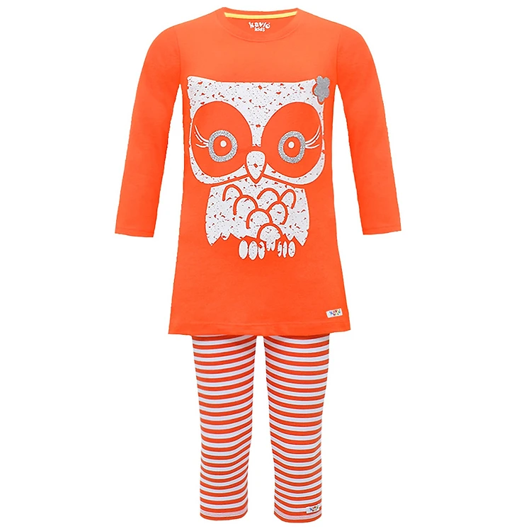 Bộ Đồ Dài Bé Gái Kavio Kids In Hình Cú Mèo GS69-N2 - Cam