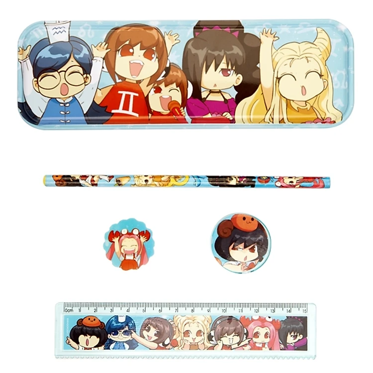 Bao gồm: hộp bút, bút chì, đồ chuốt, gôm tẩy, và thước kẻ dài 15cm.