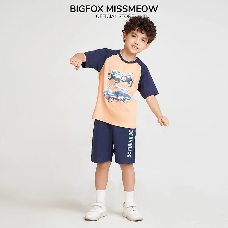 Bộ đồ hè cho bé trai Bigfox Miss Meow cộc tay chất cotton phom Hàn in ô tô size đại cỡ trẻ em 3,9,11 tuổi 25kg 40kg 1925