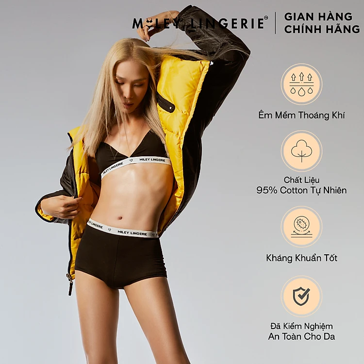 Bộ Đồ Lót Cổ Chữ V Phối Quần Boy Short Sợi Vải Thiên Nhiên Miley Lingerie