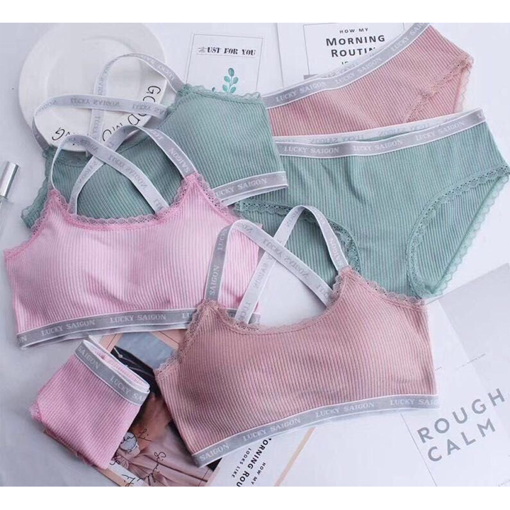 - Bộ đồ lót gân tăm chất liệu cotton co giãn 4 chiều rất quyến rũ. Chị em hay mặc áo ba lỗ sẽ k lo còn lộ dây nhé!
