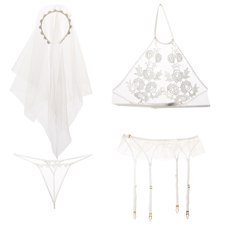 Áo bra + Quần lót + Lúp cô dâu + Kẹp vớ