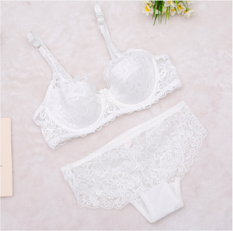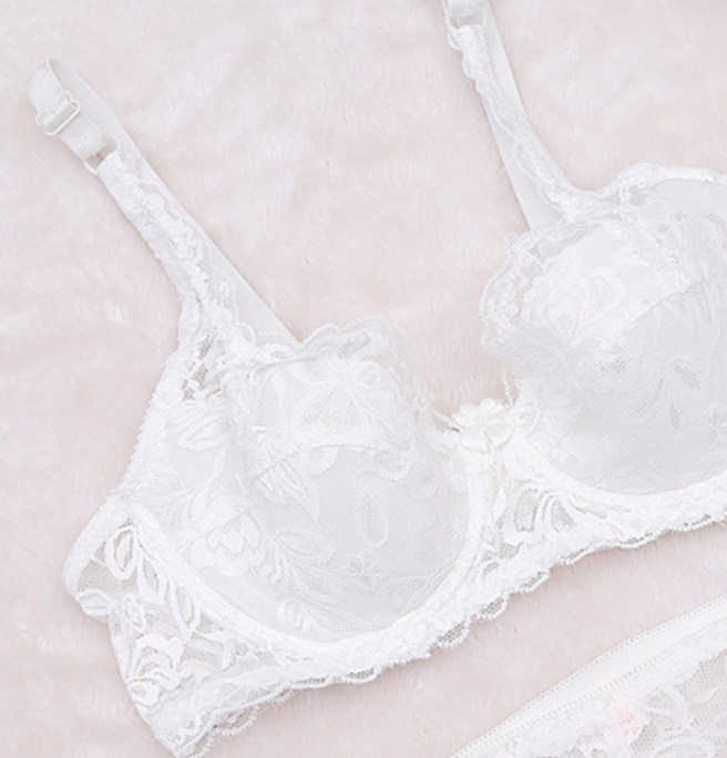 Bộ đồ lót ren áo ngực mút mỏng gọng nâng ngực màu trắng