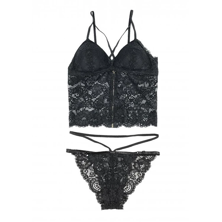 Bộ đồ lót ren dài dây chéo Ladali MS519
