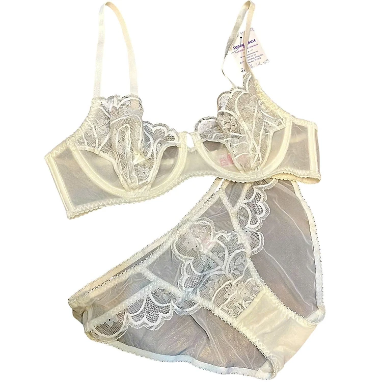 Bộ đồ lót ren hoa xuyên thấu có gọng quần lưới nguyên mông gợi cảm