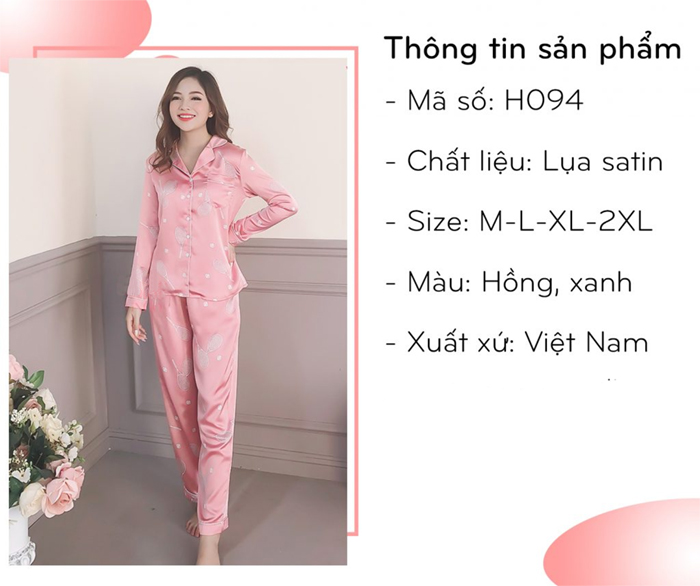 BỘ ĐỒ LỤA MẶC NHÀ DÁNG DÀI HỌA TIẾT HÌNH VỢT H094