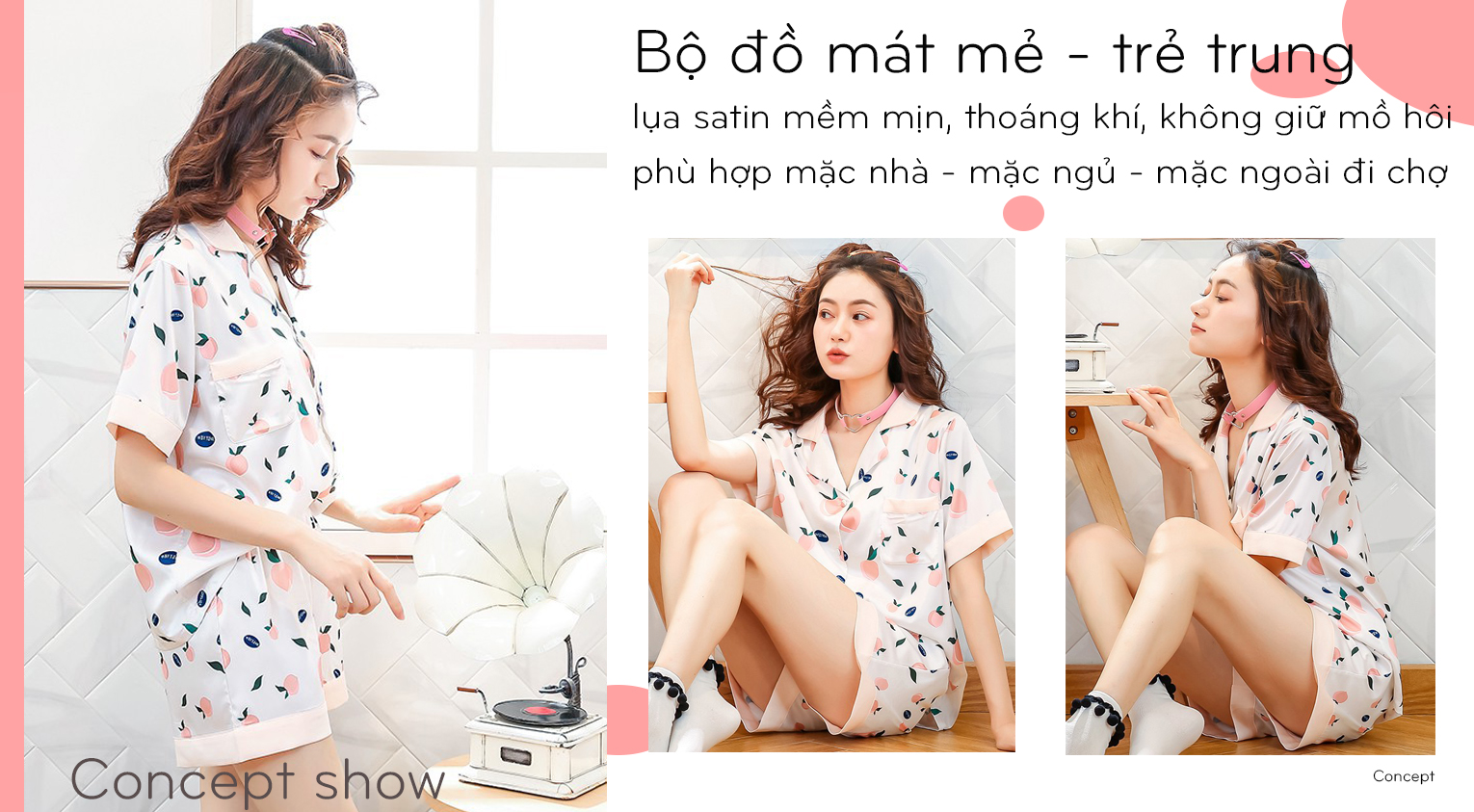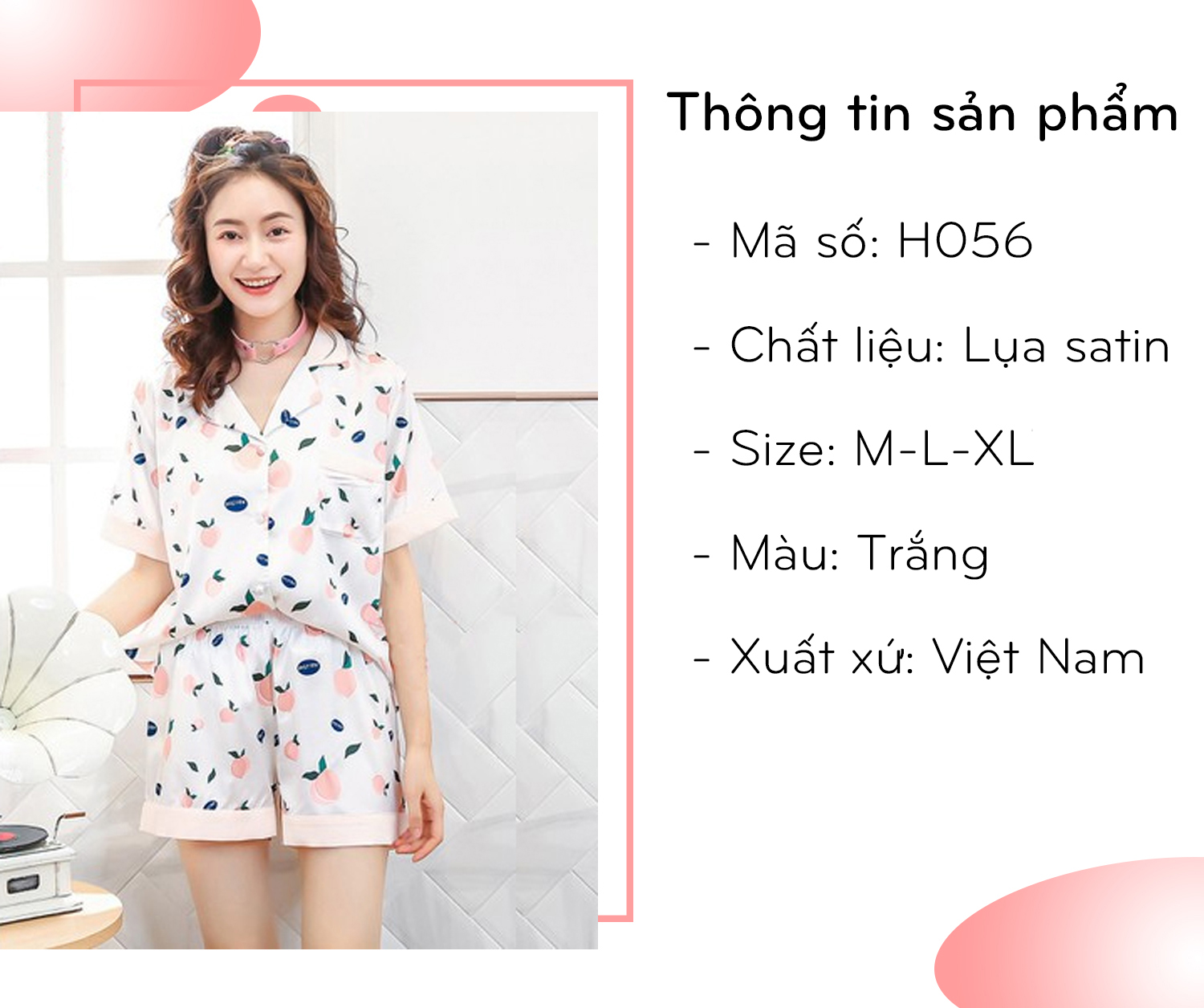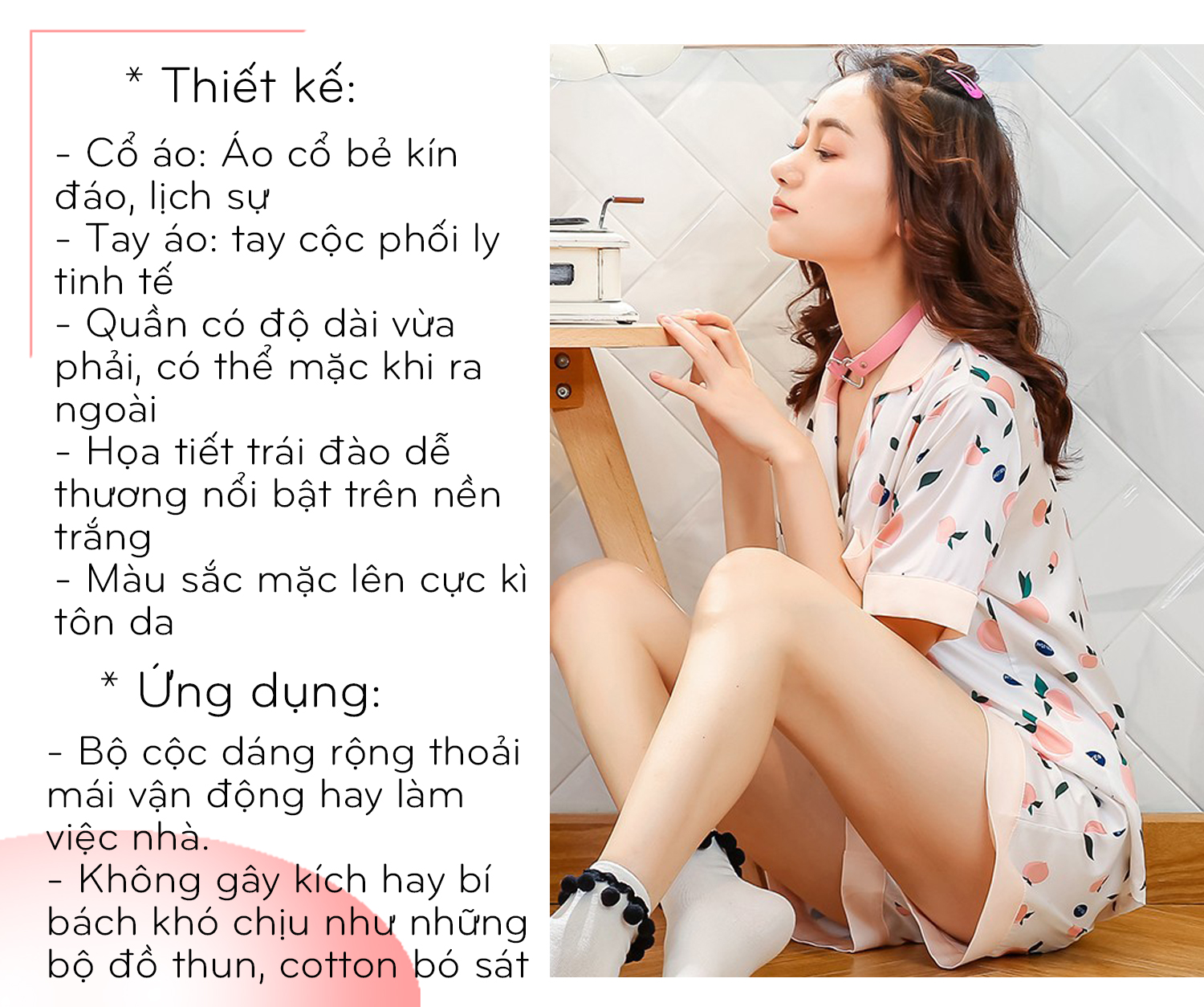 BỘ ĐỒ NGỦ LỤA CỘC TAY HỌA TIẾT QUẢ ĐÀO H056
