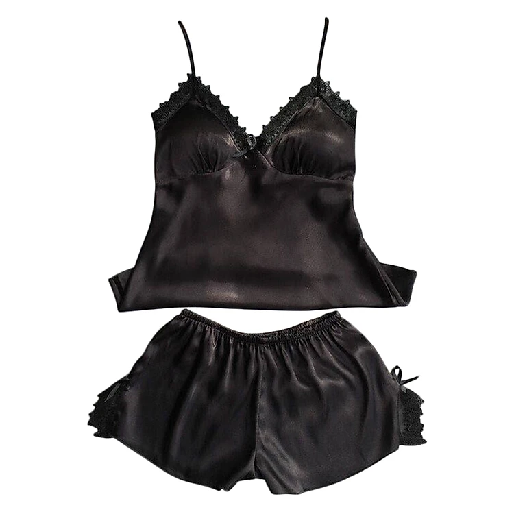 - Bộ đồ ngủ gồm áo 2 dây và quần đùi, kiểu dáng thanh lịch mà gợi cảm tôn lên vóc dáng và mang đến vẻ đẹp cùng sự tự tin cho phái đẹp.