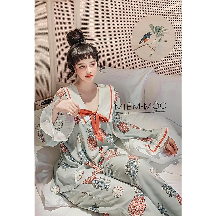 Bộ đồ ngủ lụa tiểu thư nơ xinh MIEMMOC QUẢNG CHÂU cao cấp - Hàng có sẵn (video + ảnh thật)