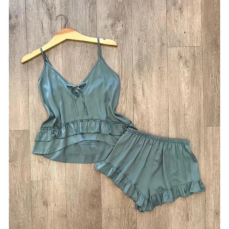 Bộ đồ ngủ nữ mặc nhà 2 dây lụa cao cấp mềm mại hàng thiết kế Màu Xám