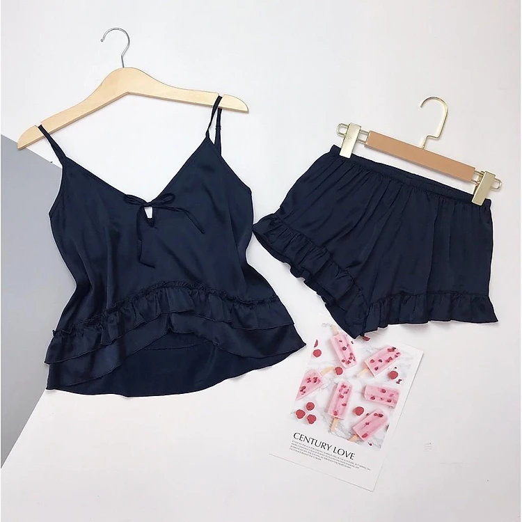 Bộ đồ ngủ nữ mặc nhà 2 dây lụa cao cấp mềm mại hàng thiết kế Màu Xanh ngọc .