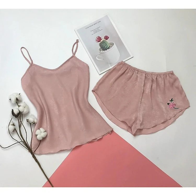 Bộ đồ ngủ nữ mặc nhà 2 dây lụa cao cấp mềm mại hàng thiết kế MS04