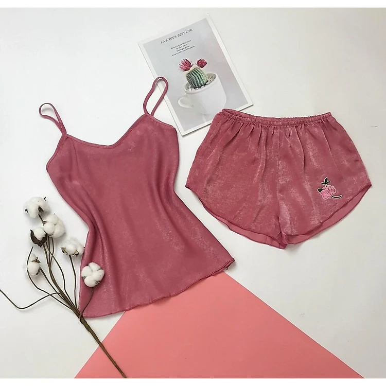 Bộ đồ ngủ nữ mặc nhà 2 dây lụa cao cấp mềm mại hàng thiết kế MS05