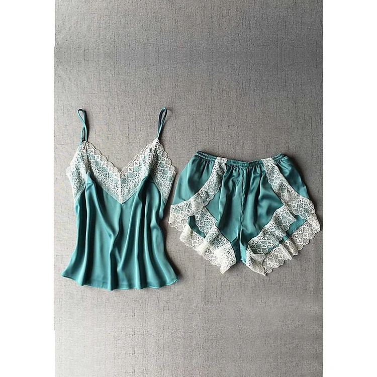 Bộ Đồ Nữ Phi Lụa Quần Ngắn Viền Ren Trắng