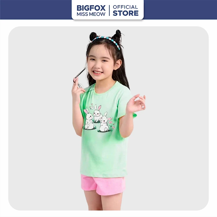 Đồ Bộ Bé Gái Bigfox Missmeow Mùa Mùa Hè Vải Cotton In Thỏ Dễ Thương Size Đại Trẻ Em 3,4,5,6,7,8 Tuổi 25kg 30kg
