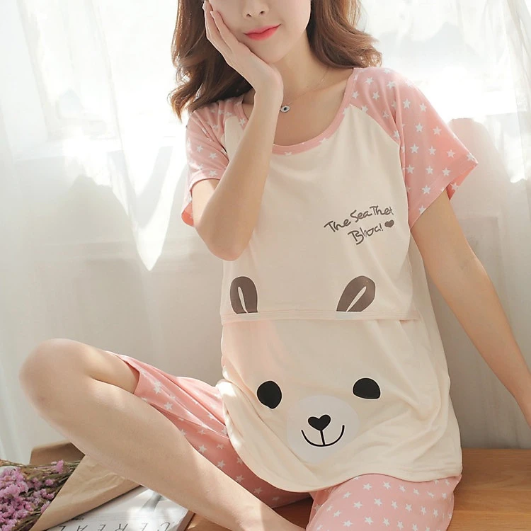 Bộ đồ sau sinh cho con bú với chất liệu 100% cotton vô cùng thoáng mát, có nắp mở cho con ti tiện dụng