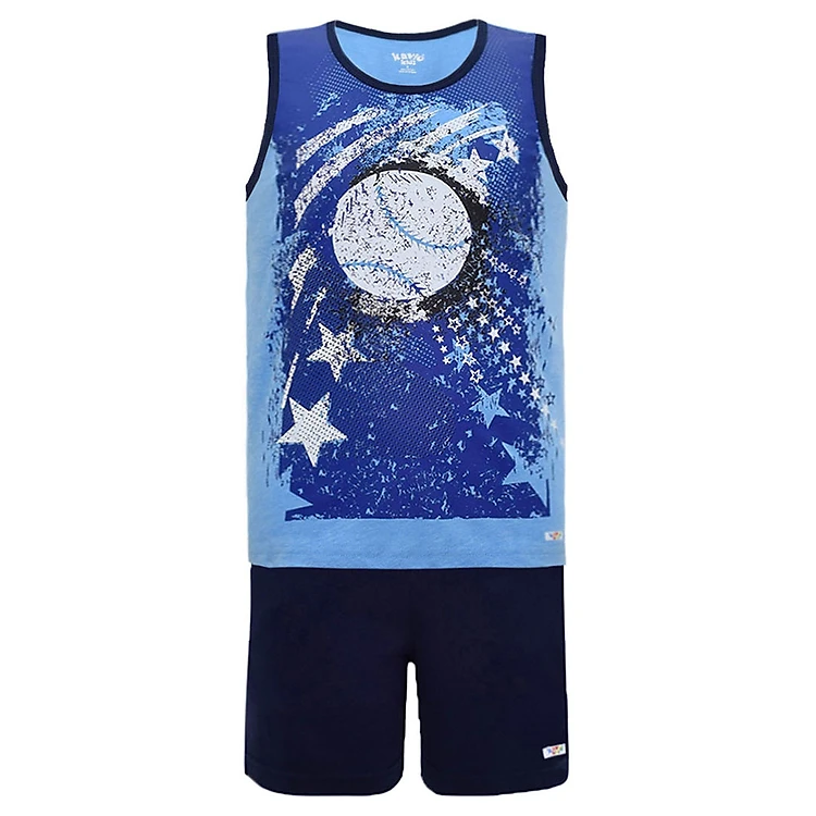 Bộ đồ in hình theo cảm hứng thể thao với quả bóng, ngôi sao cùng những vệt màu độc đáo. Sản phẩm có màu xanh da trời tươi sáng sẽ tạo nên vẻ ngoài nổi bật và khỏe khoắn cho các bé.