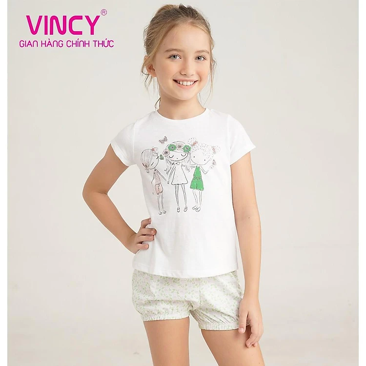 Bộ Đồ Short Thun Bé Gái Vincy Thoáng Mát KST030W01