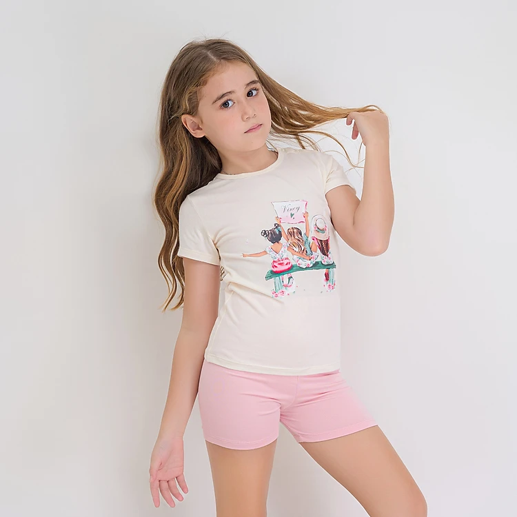 Bộ Đồ Short Thun Bé Gái Vincy Thoáng Mát KST088W14