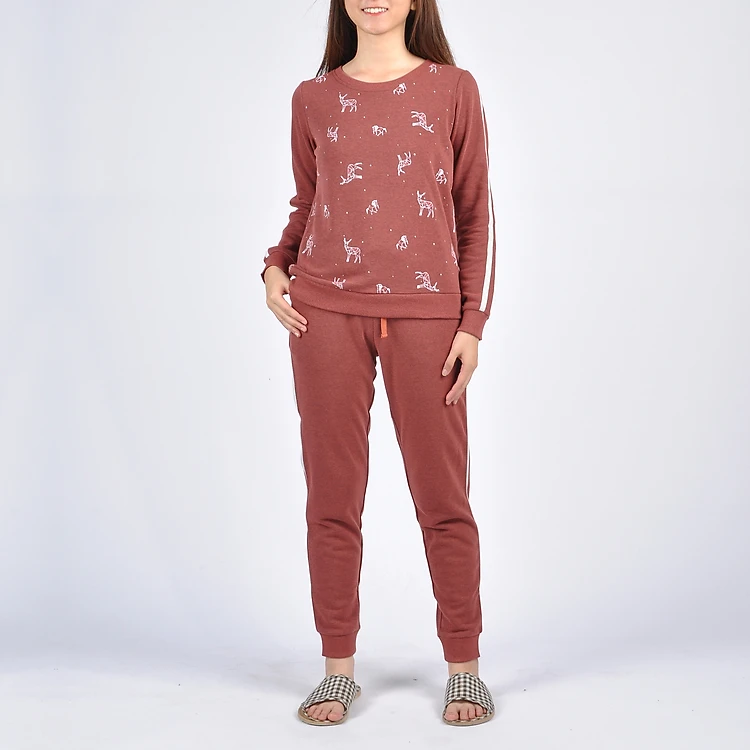 Thiết kế trẻ trung hình in hươu sao cách điệu toàn thân áo kẻ sọc 2 bên tay áo và quần mang lại sự năng động cá tính và hơi hướng thể thao.vừa mặc nhà vừa có thể dạo phố