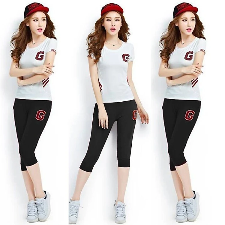 Áo tay ngắn cùng quần lửng ôm chân thon.
