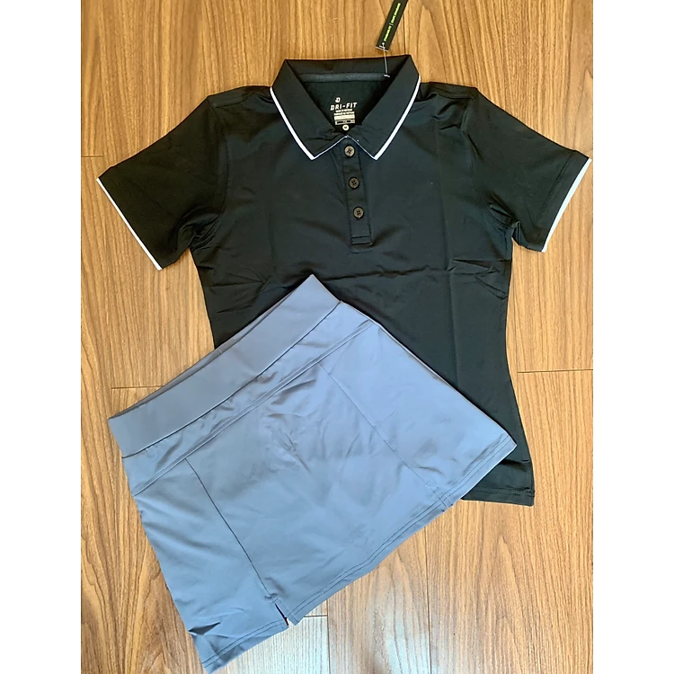 Áo đen -Quần váy xám, M