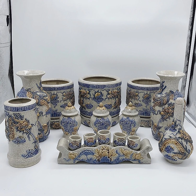 Lưu ý: Vì một lý do nào đó, nhà cung cấp không thể chuẩn bị đúng họa tiết như trong ảnh, quý khách hàng hoan hỉ cho phép nhà cung cấp thay thế hình dáng kỷ chén, hoặc họa tiết lọ hoa.
