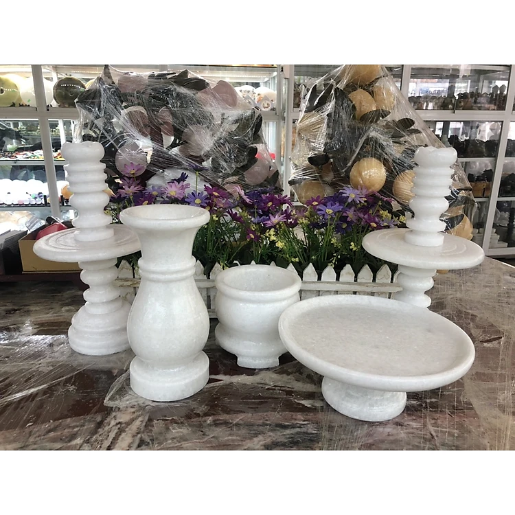 Bộ đồ thờ cúng đá cẩm thạch trắng