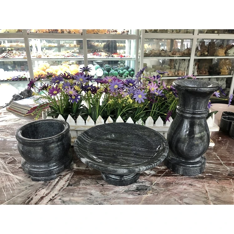 Bộ đồ thờ cúng đá cẩm thạch vân đen
