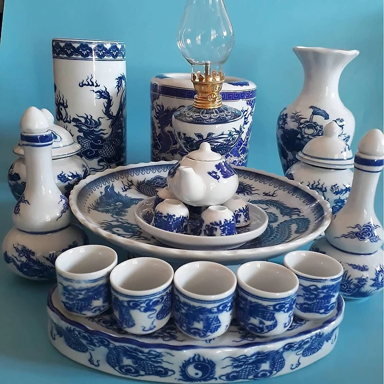 Bộ đồ thờ sứ men trắng cho ban thờ gia tiên tiêu chuẩn