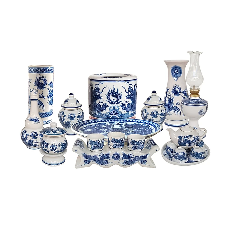 Bộ đồ thờ sứ Bát Tràng men trắng TR12