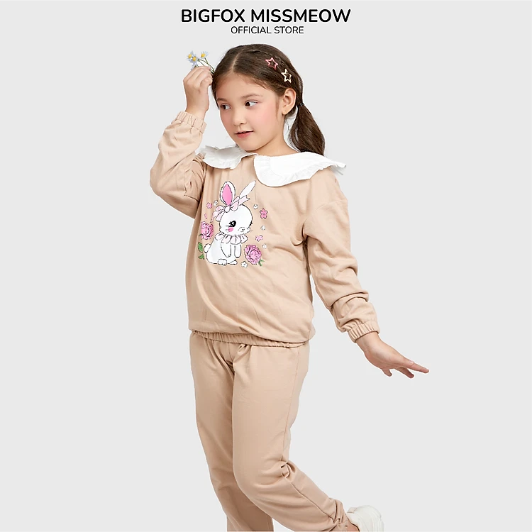 Bộ đồ thu đông cho bé gái Bigfox Miss Meow vải nỉ, cổ sen nữ tính kiểu Hàn Quốc size đại trẻ em 3,7,9,11 tuổi 39kg