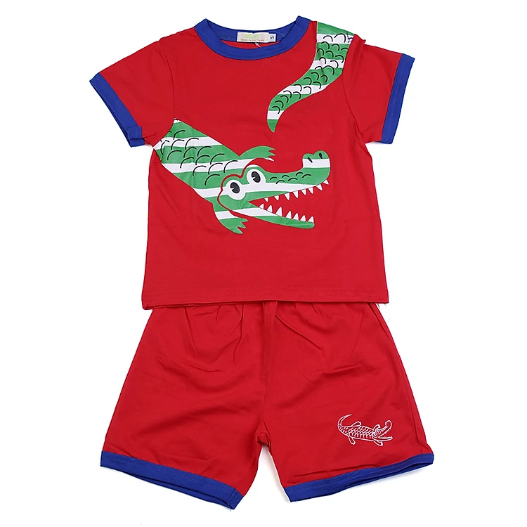 Áo được may kiểu cổ tròn, tay ngắn, viền cổ và tay phối màu xanh dương nổi bật trên nền màu đỏ. Họa tiết hình chú cá sấu nghịch ngợm được in nổi bật, cho bé thêm phần thích thú khi mặc. Quần ngắn lưng thun co giãn tốt, tạo cảm giác thoải mái cho bé khi mặc.