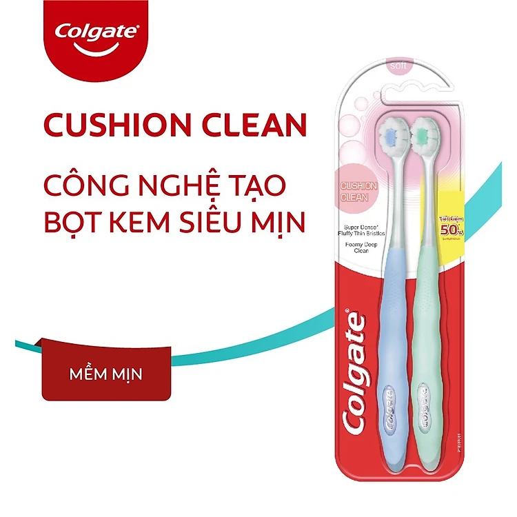 Bộ đôi bàn chải Colgate Cushion Clean công nghệ tạo bọt kem siêu mịn