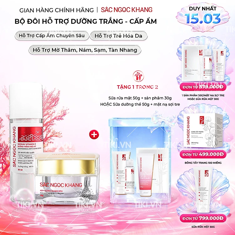 Bộ đôi cấp ẩm, dưỡng trắng da Sắc Ngọc Khang: Serum C dưỡng trắng 30ml + Kem dưỡng da ban đêm 30g