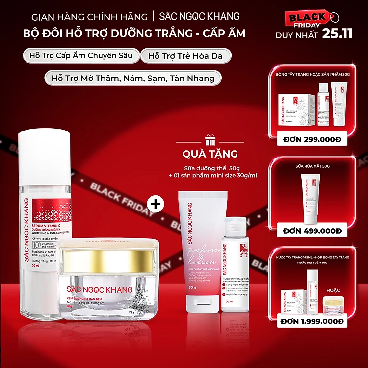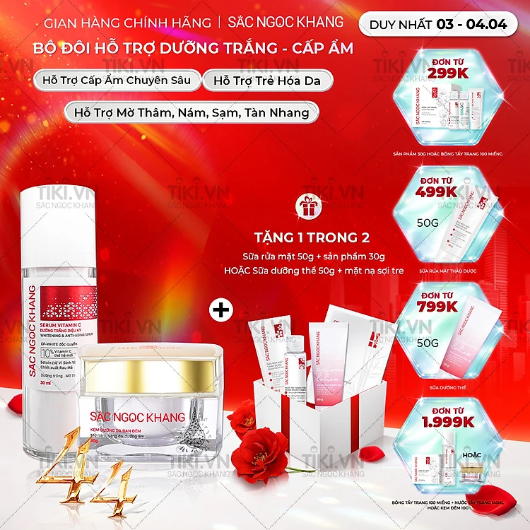 Bộ đôi cấp ẩm, dưỡng trắng da Sắc Ngọc Khang: Serum C dưỡng trắng 30ml + Kem dưỡng da ban đêm 30g