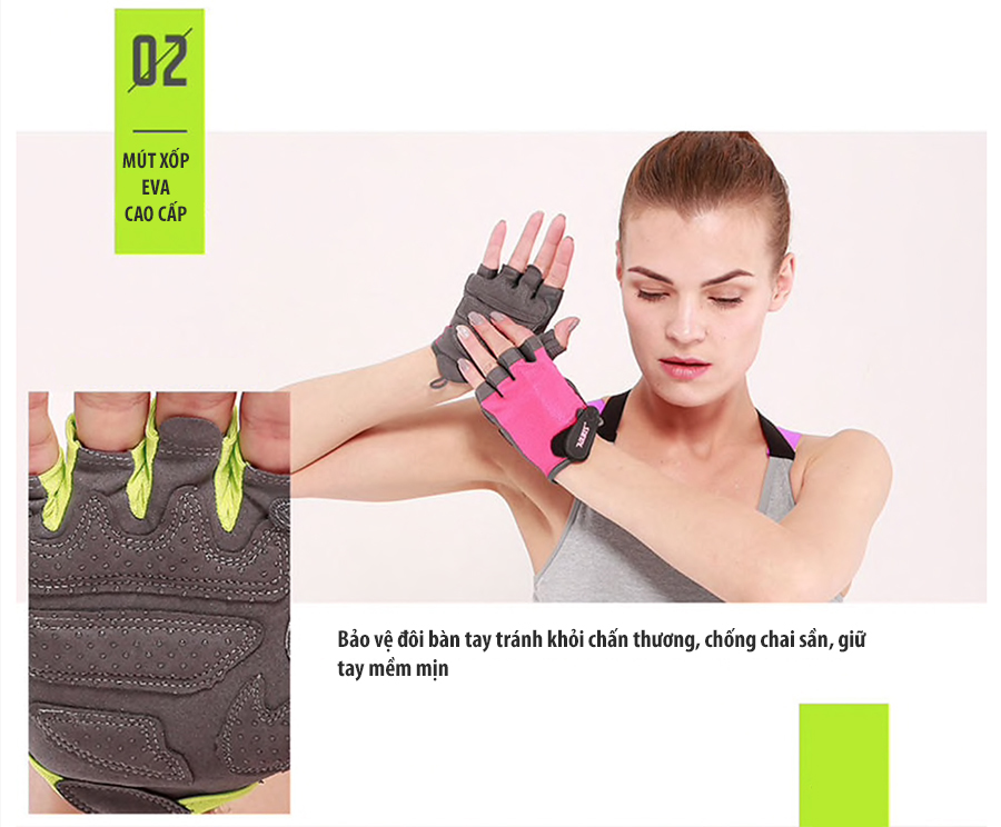 Lòng bàn tay được đệm bởi các lớp mút xốp EVA bảo vệ tay
