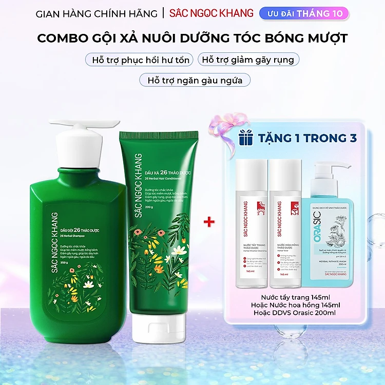 Bộ Đôi Gội Xả 26 Thảo Dược Sắc Ngọc Khang - Làm Sạch, Hỗ Trợ Phục Hồi & Chăm Sóc Tóc Mềm Mượt, Giảm Gãy Rụng