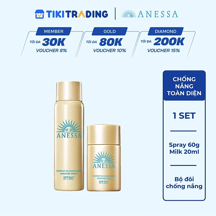 Bộ đôi Kem chống nắng dạng xịt dưỡng da bảo vệ hoàn hảo + Kem chống nắng dạng sữa dưỡng da kiềm dầu bảo vệ hoàn hảo (Anessa Gold Spray 60g + Gold Milk 20ml)