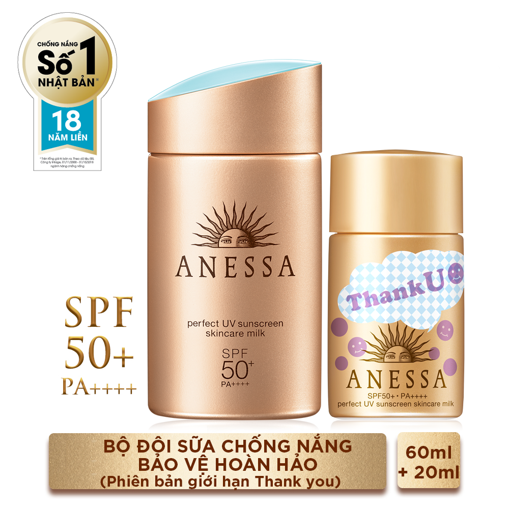 Bộ Đôi Kem chống nắng kiềm dầu khô thoáng hoàn hảo siêu tiết kiệm Anessa Gold Milk 60ml + Gold Milk 20ml